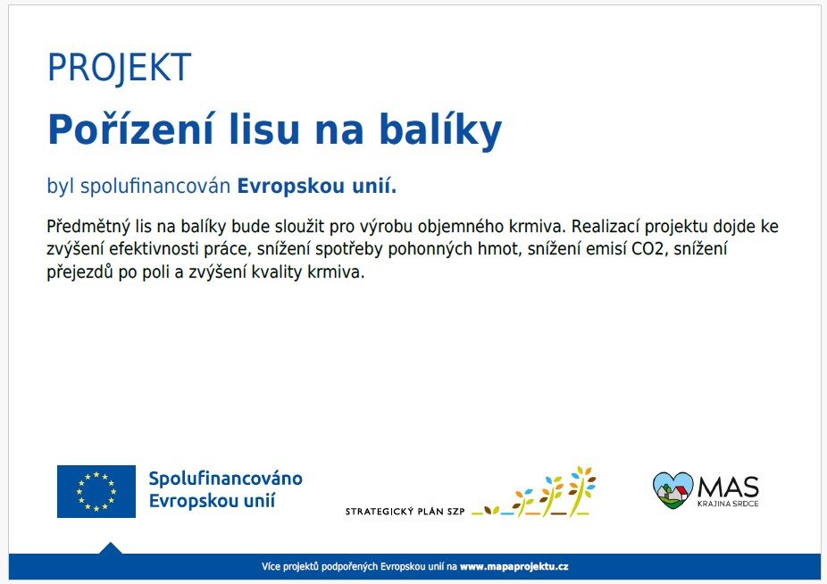 Název projektu: Pořízení lisu na balíky